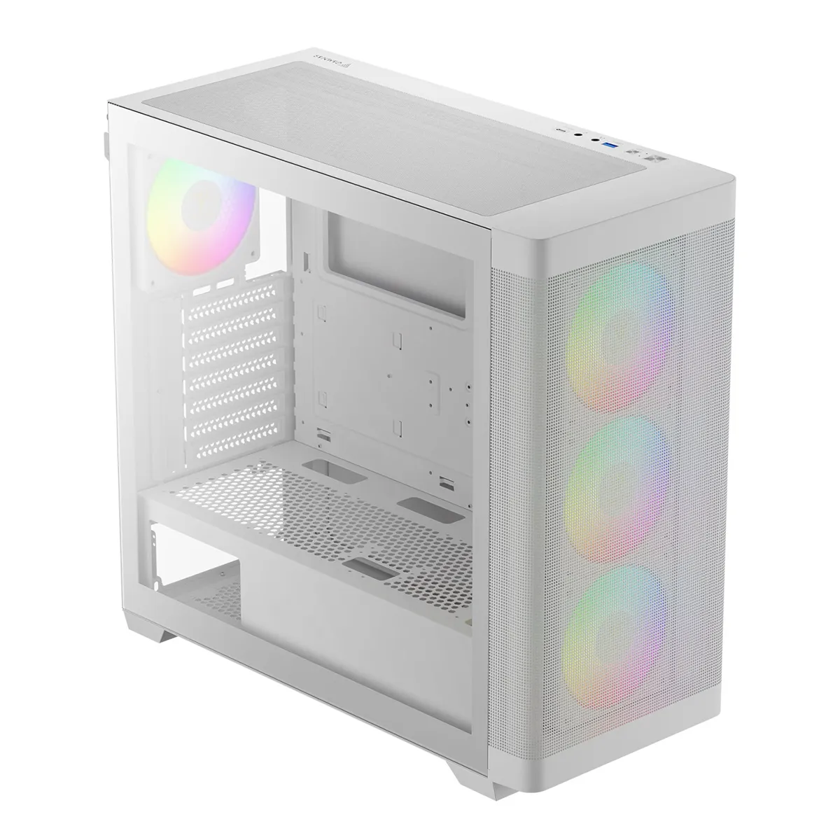 یکی از مهمترین ویژگیهای این مدل، سیستم خنککنندگی فوقالعاده آن است. این کیس به صورت پیشفرض مجهز به ۴ فن قدرتمند ۱۲۰ میلیمتری است که در موقعیتهای استراتژیک (معمولاً سه فن در جلو و یک فن در پشت) نصب شدهاند. این آرایش فنها باعث ایجاد یک جریان هوای قوی و یکنواخت در تمام بخشهای کیس میشود که دمای پردازنده، مادربرد و به ویژه کارت گرافیک را حتی در زیر بارهای کاری سنگین و گیمینگ طولانی، در پایینترین حد ممکن نگه میدارد. وجود این تعداد فن از پیش نصب شده، نیاز کاربر به خرید فنهای اضافی را از بین برده و هزینههای نهایی سیستم را کاهش میدهد.