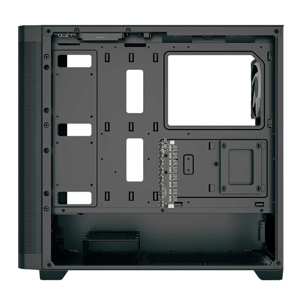 یکی از مهمترین ویژگیهای این مدل، سیستم خنککنندگی فوقالعاده آن است. این کیس به صورت پیشفرض مجهز به ۴ فن قدرتمند ۱۲۰ میلیمتری است که در موقعیتهای استراتژیک (معمولاً سه فن در جلو و یک فن در پشت) نصب شدهاند. این آرایش فنها باعث ایجاد یک جریان هوای قوی و یکنواخت در تمام بخشهای کیس میشود که دمای پردازنده، مادربرد و به ویژه کارت گرافیک را حتی در زیر بارهای کاری سنگین و گیمینگ طولانی، در پایینترین حد ممکن نگه میدارد. وجود این تعداد فن از پیش نصب شده، نیاز کاربر به خرید فنهای اضافی را از بین برده و هزینههای نهایی سیستم را کاهش میدهد.