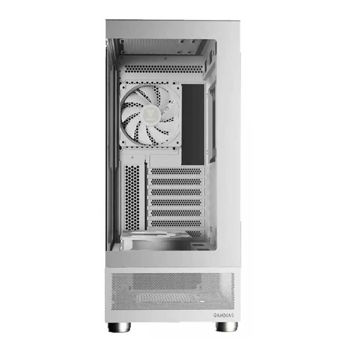 از نظر فضای داخلی، کیس گیم دیاس مدل ۴۸۰x۳۶۰x۲۱۰ میلیمتر، سازگاری بسیار بالایی با قطعات مختلف دارد. این کیس به راحتی از مادربردهای استاندارد ATX و قطعات بزرگ پشتیبانی میکند. فضای کافی در کنار سینی مادربرد برای نصب کارت گرافیکهای بلند و فضای عمیق برای پاورهای با توان بالا در نظر گرفته شده است. همچنین مدیریت کابلها در این مدل به دلیل فضای مناسب پشت سینی مادربرد و وجود راهنماهای کابل، بسیار آسان است و کاربران میتوانند با کمترین زحمت، سیستمی تمیز و مرتب مونتاژ کنند که هم به زیبایی ظاهری میافزاید و هم جریان هوا را بهبود میبخشد.