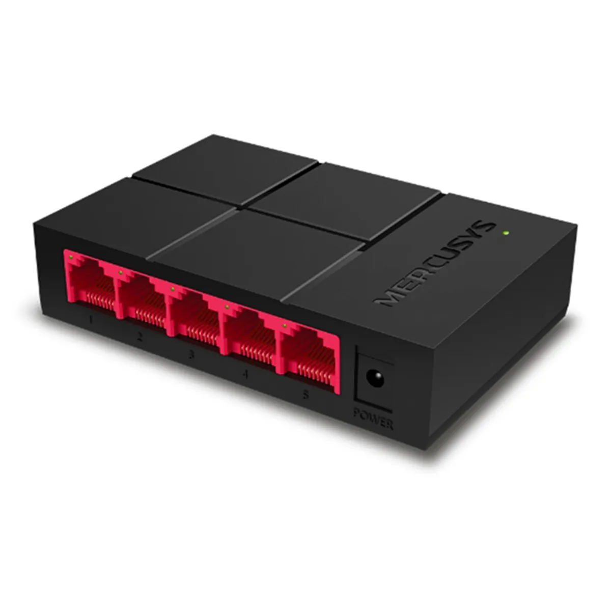 سوئیچ مرکوسیس مدل 5port Gigabit-Desktop، یک راهکار ارتباطی پیشرفته و قدرتمند است که برای کاربرانی که به دنبال سرعت انتقال دادههای بسیار بالا در شبکه محلی خود هستند، طراحی شده است. این دستگاه با ارائه ۵ پورت اترنت گیگابیتی، گامی فراتر از سوئیچهای معمولی ۱۰۰ مگابیتی برداشته و پهنای باندی تا ۱۰ برابر بیشتر را در اختیار کاربران قرار میدهد. این ویژگی باعث میشود تا انتقال فایلهای حجیم، پشتیبانگیری (Backup) از اطلاعات، دسترسی به سرورهای شبکه و اشتراکگذاری رسانههای سنگین با سرعتی باورنکردنی و بدون تاخیر انجام شود. اگر در خانه یا دفتر کار خود از دستگاههایی مانند کامپیوترهای مدرن، سرورهای NAS، کنسولهای بازی نسل جدید یا دوربینهای مداربسته با کیفیت بالا استفاده میکنید، این سوئیچ انتخابی ایدهآل برای آزادسازی پتانسیل کامل آنهاست.